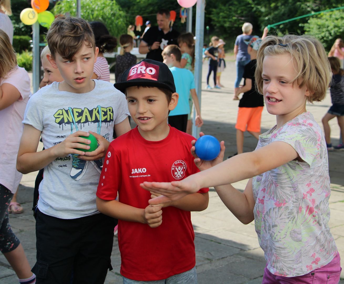 Das anschließende Sommerfest mit vielen abwechslungsreichen Angeboten für die gesamte Grundschule ließ aber die Tränen schnell trocknen. Mit Seifenblasen, Sackhüpfen, Schminken, Tattoos, Dosenwerfen, Zielschießen, gebastelten Hüten, Geschicklichkeits- und Gruppenspielen, Kratzbildern, Seilspringen, Schach und vielem vielem mehr wurden der Sommer gefeiert und die Ferien begrüßt.