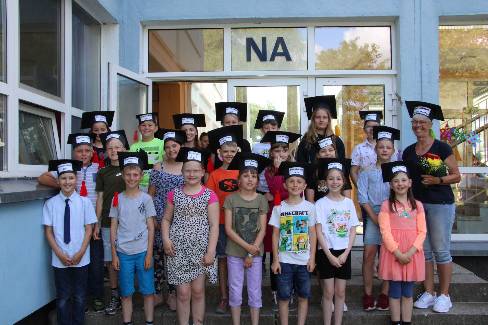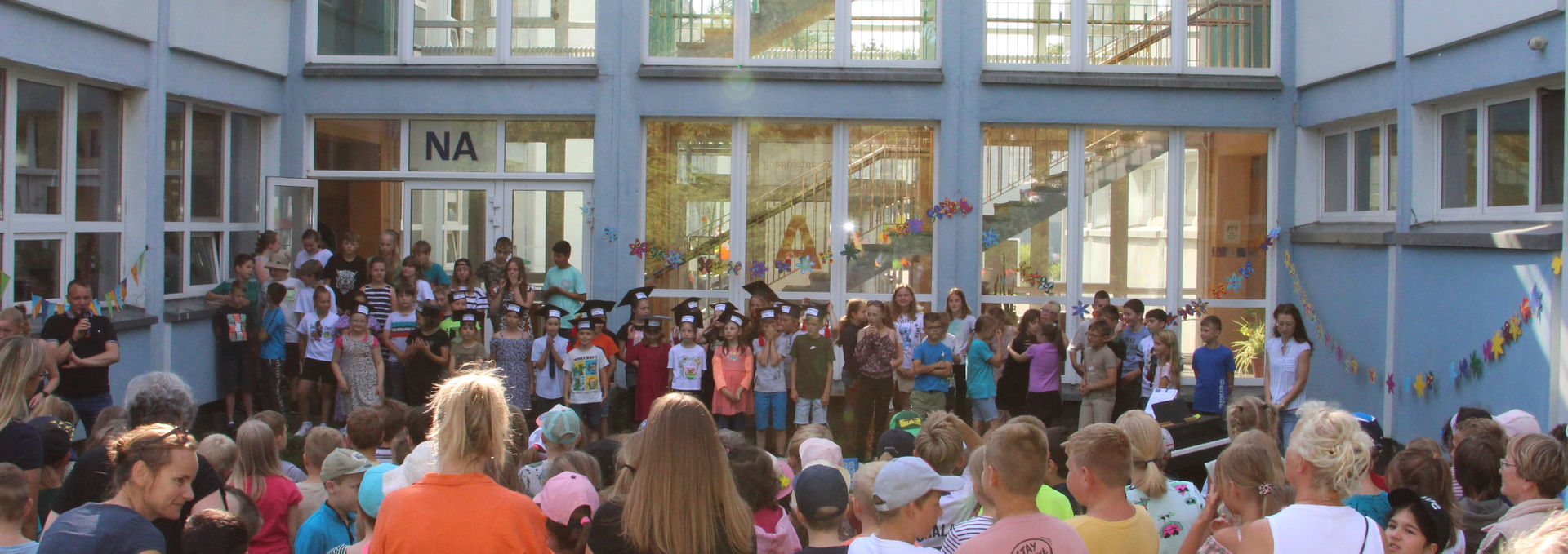 Wir wünschen unseren vierten Klassen alles Gute für den nächsten Schritt, unserem Herrn Burger einen guten Start in seiner neuen Schule und allen Grundschülern, Lehrern und Lehrerinnen und Mitarbeitern einen schönen Sommer.