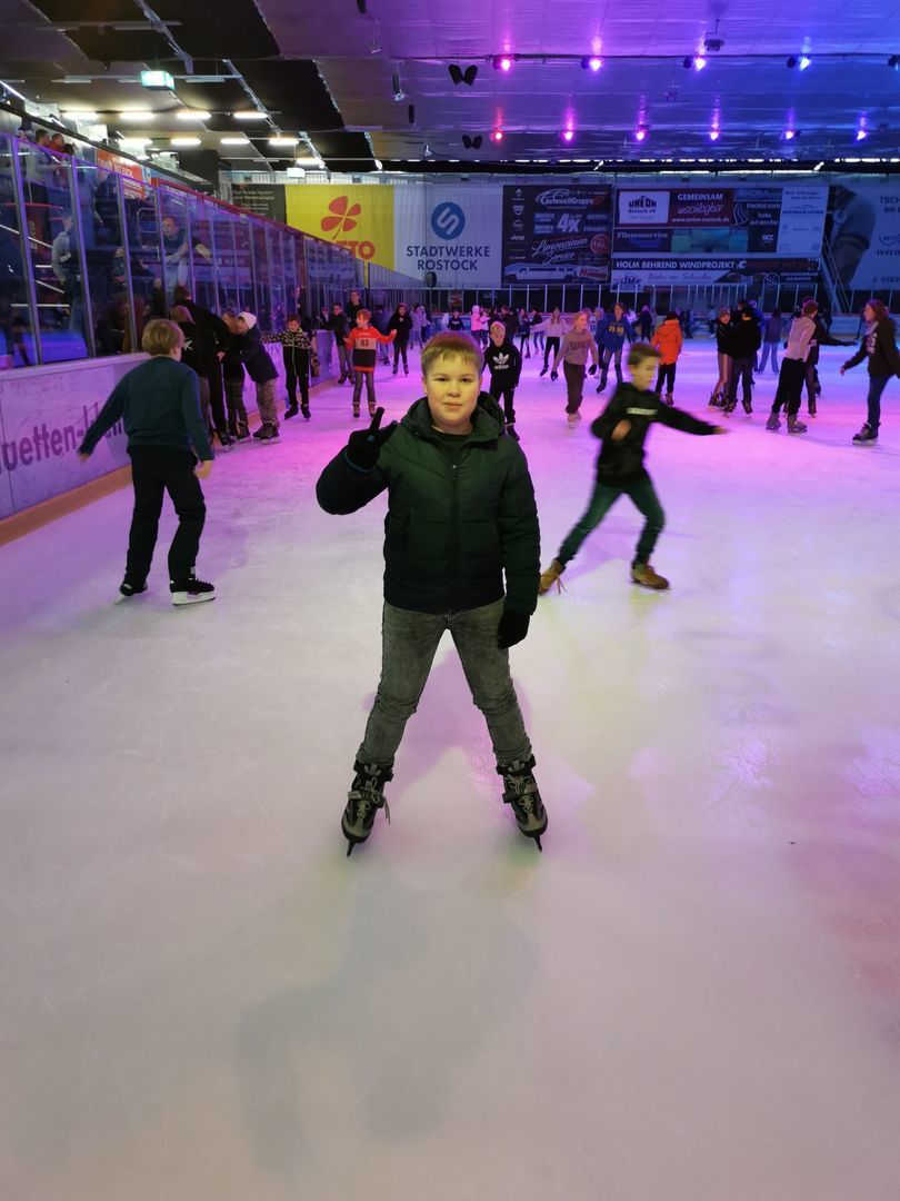 Leuchtende Kinderaugen erstrahlten bereits bei der Ankunft in der Rostocker Eishalle. Beim traditionellen Schlittschuhlaufen der Orientierungsstufe erkundeten unsere Kinder mutig und ausgelassen die größte Eisfläche in Mecklenburg-Vorpommern. Ein besonderes Highlight bestand darin, dass sich die Eisfläche mit klangvollen Beats eines DJs sowie Discolichtern zu einer Tanzfläche verwandelte, sodass die Kinder vergnügt unzählige Runden auf dem Eis drehten. Nach dem Leitspruch: „Einer für alle - alle für einen!“, unterstützten sich die Schüler*innen gegenseitig beim Schlittschuhanziehen oder gaben sich Hilfestellung auf der Eisfläche. Nach dem bunten Treiben, viel Bewegung und neugewonnenen Eindrücken ging es glücklich nach Ribnitz- Damgarten zurück.